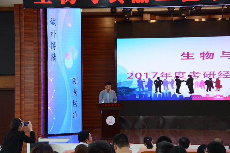 为进一步激发学生考研热情,巩固考研成果,促进学院优良学风形成。2017年6月21日,生物与食品工程学院在二教报告厅成功举办考研经验交流暨学风建设表彰大会。学校教务处副处长于军,生物与食品工程学院党委书记马宏魁、副院长隋新、党委副书记倪龙、副院长张元新、优秀校友高婵娟博士及全体师生参加了会议。大会由副院长张元新主持。