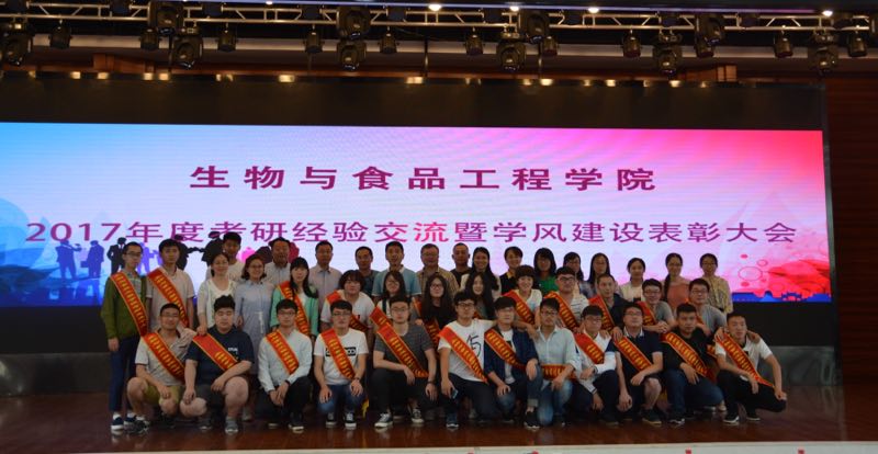 汗马耕耘有矢志,硕果飘香又一年。生物与食品工程学院自2014年建院以来,秉承“育人为本,科研为要,人才为重,特色为先”的办学理念,以打造“绿色健康文明和谐”教学院为品牌载体,积极倡导“敬业乐群,达士通人”教风和“严谨而不拘泥,灵动而不虚空”的学风。注重发挥教师在学生成人成才中的指导作用,不断强化考研意识,扎实推进学风建设。三年内实现考研率翻番,2017年共有29名学生考取硕士研究生,考研率为25.22%,连续两年位居全校第一。